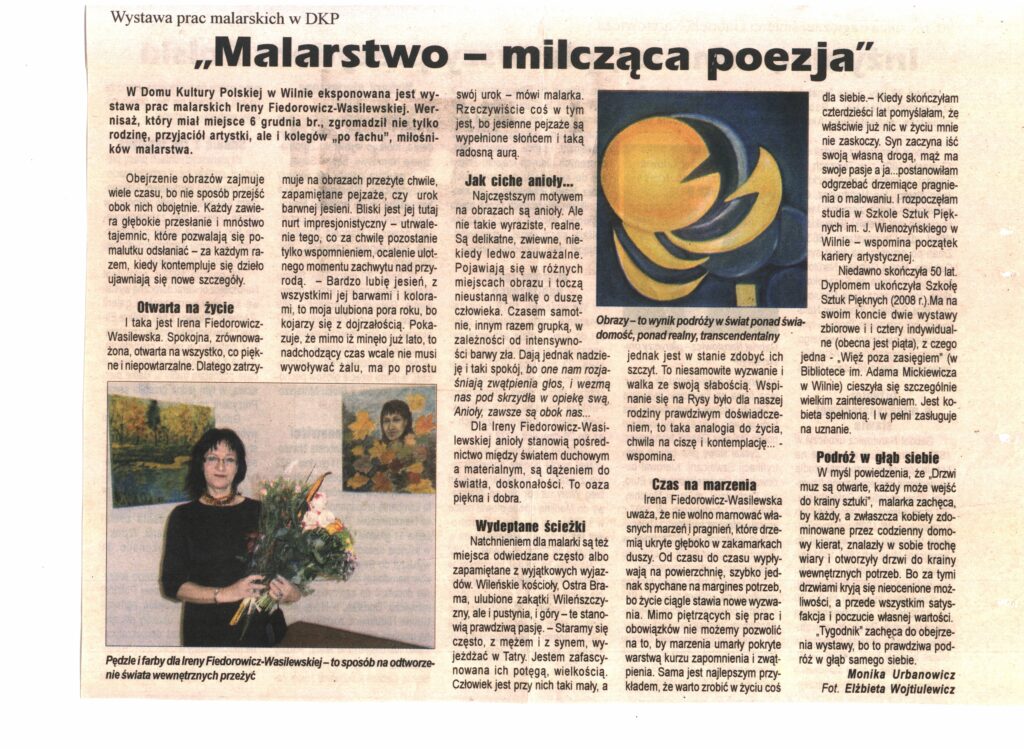 Vilniaus apskrities Adomo Mickevičiaus viešojoje bibliotekoje (VAVB) veikė buvusios bibliotekos darbuotojos, Vilniaus krašto tyrėjos Irenos Fedorovič Vasilevskos (Fiedorowicz Wasilewska) tapybos paroda. Ekspozicijoje buvo peizažų, natiurmortų, spalvingų kompozicijų. Jos tapybos technika – aliejiniai dažai ant drobės. Du savo paveikslus Irena dovanojo bibliotekai. Menininkė yra surengusi per 20 personalinių tapybos parodų, dalyvauja jungtinėse parodose, taip pat pleneruose […]